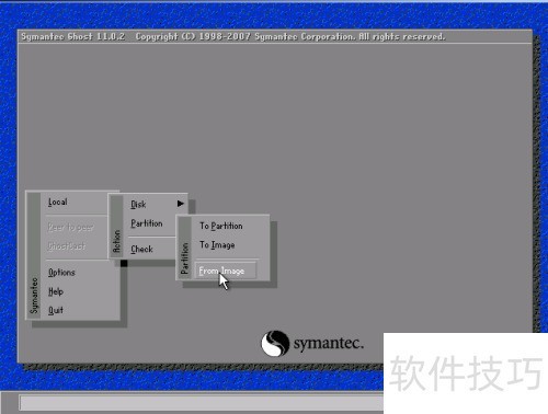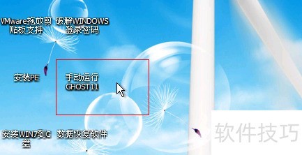 3、 在PE系统的桌面或开始菜单中打开GHOST装机工具,启动后进入系统安装界面。