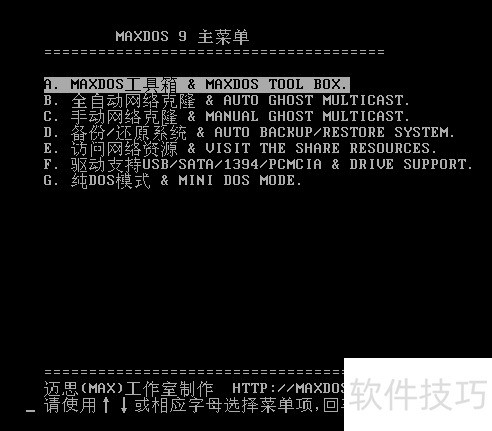7、 进入MAXDOS工具箱或MAXDOS TOOL BOX选项,按回车键确认选择。