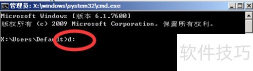 15、 输入系统盘盘符加冒号,例如d:,然后按回车键确认。