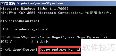 19、 输入move Magnify.exe Magnify.exe.bak后按回车键执行。