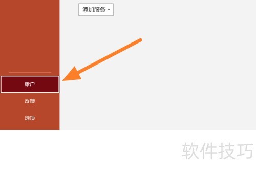 2、 在PowerPoint左下角选择账户选项即可。
