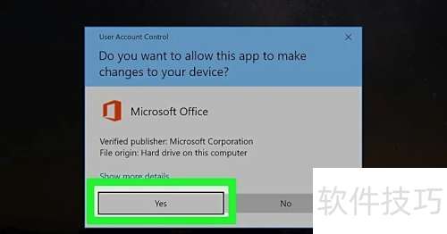 6、 提示出现后点击是,即可运行安装程序,开始在电脑上安装Office。