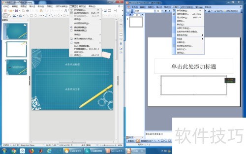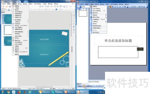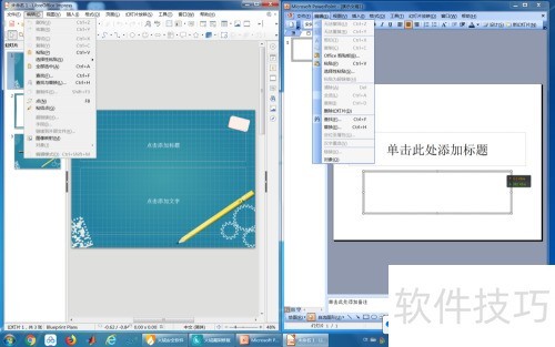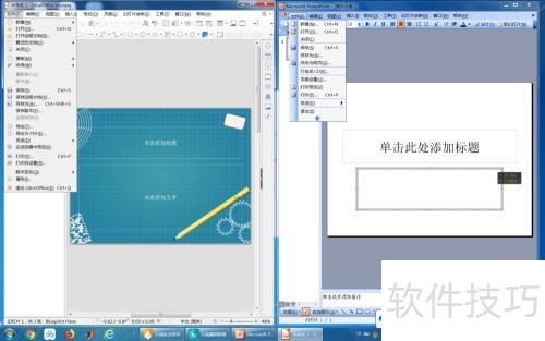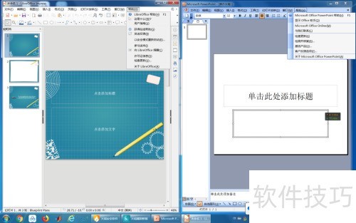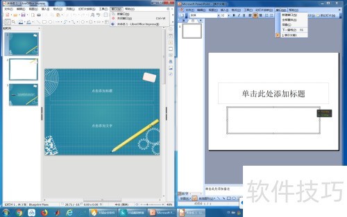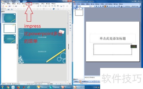 1、 Microsoft PowerPoint 和 LibreOffice Impress 演示文稿的启动界面所示,两者在功能布局和操作方式上各有特点,适用于不同用户的办公需求。