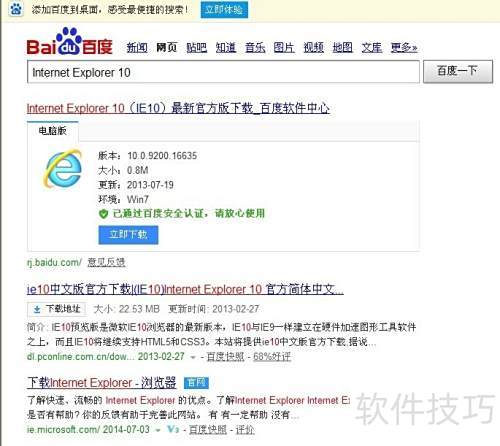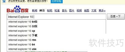 2、 在搜索引擎的输入框内键入Internet Explorer 10进行搜索。