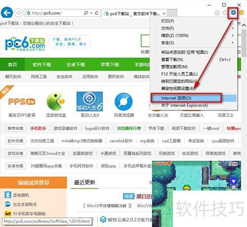 2、 进入IE浏览器,打开Internet选项设置界面。