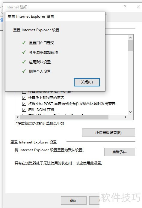 5、 现在开始重置Internet Explorer的设置,完成后重启计算机,具体操作所示。