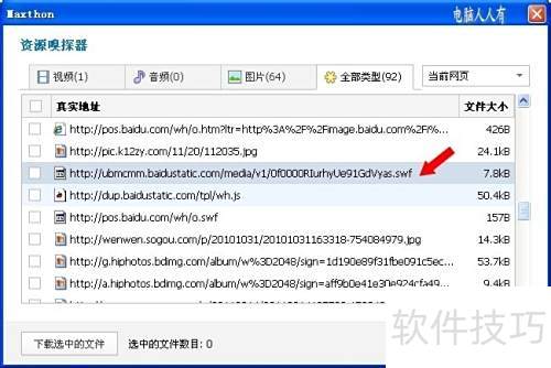 8、 利用资源嗅探工具可便捷下载SWF文件。