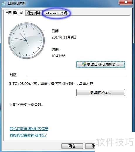 2、 在日期和时间设置的上方,选择Internet 时间选项。