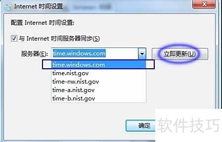 5、 在服务器下拉列表中选择time.windows.com,然后点击立即更新按钮,开始同步更新操作。