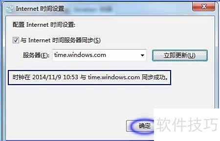 6、 此时将显示时钟已成功与……同步的提示信息,表示计算机已与网络时间同步完毕,点击确认即可返回主界面。