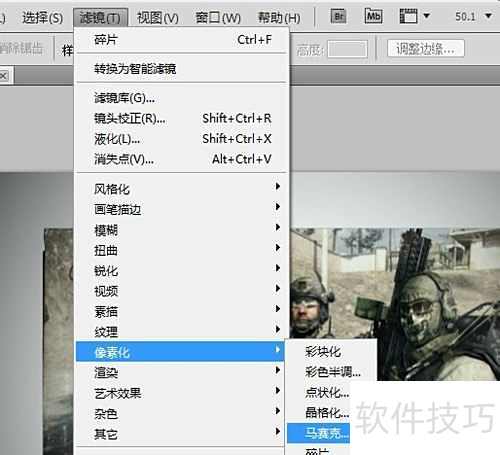 4、 进入滤镜菜单,选择像素化功能,然后点击其中的马赛克选项即可完成操作...