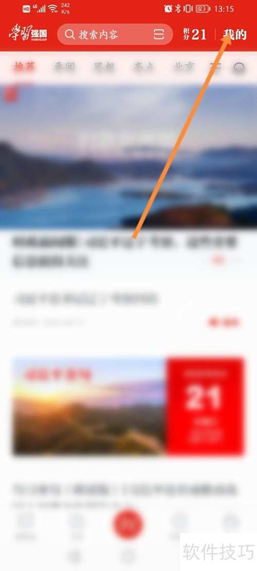 1、 打开学习强国应用,点击顶部我的进入个人页面。