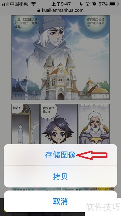 5、 长按想要保存的漫画,在弹出菜单中选择,系统将自动将其保存至浏览器相册或手机本地相册中。