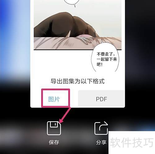 10、 滑动底部漫画至末页,点击图片图标即可。