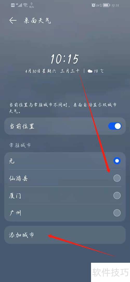 4、 进入界面后可选择当前位置或添加其他城市。