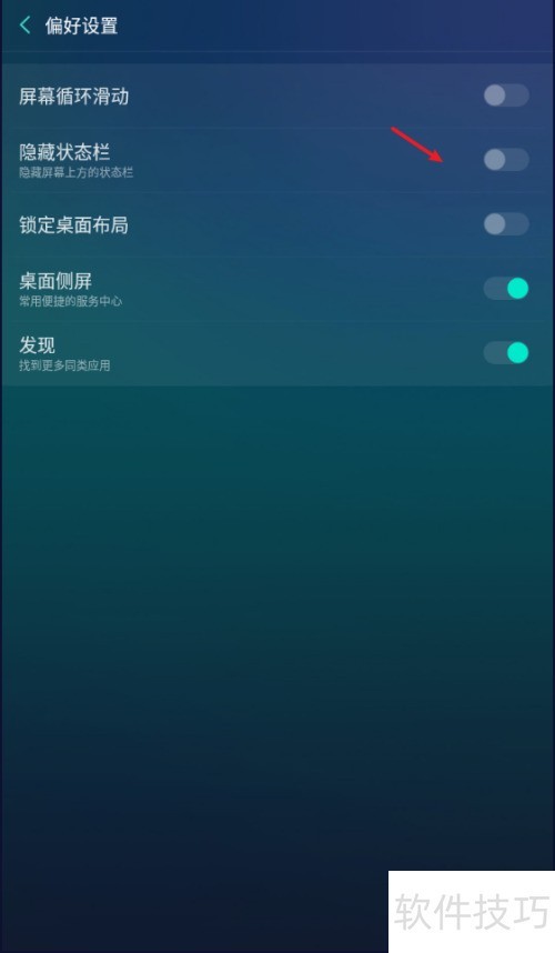 4、 进入偏好设置,选择隐藏状态栏选项。