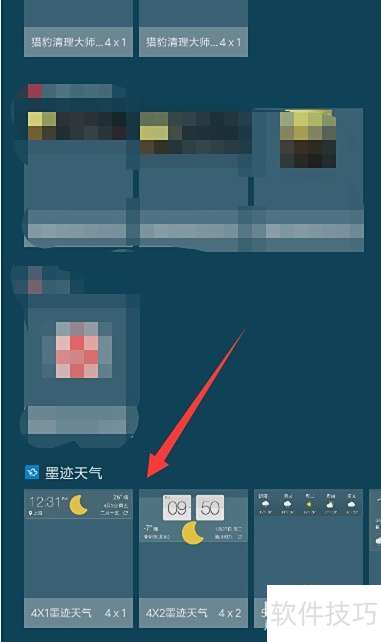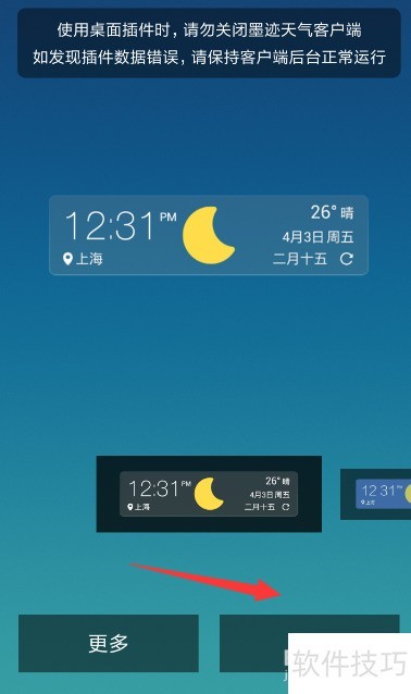 2、 下滑至插件列表底部,找到墨迹天气桌面插件,选择心仪的模板即可完成设置。