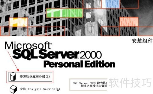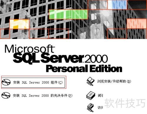 3、 在安装主界面中,选择安装SQL Server 2000组件进行下一步操作。