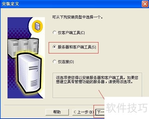 7、 若本机为数据存储服务,选择服务器和客户端工具,随后点击下一步继续操作。