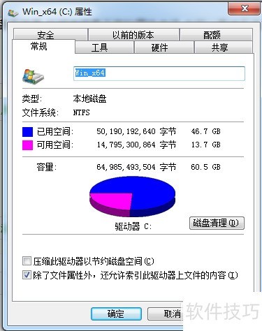 4、 新窗口为系统盘属性,点击其中的磁盘清理按钮即可。