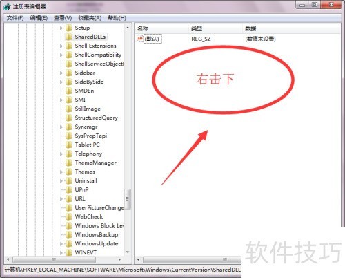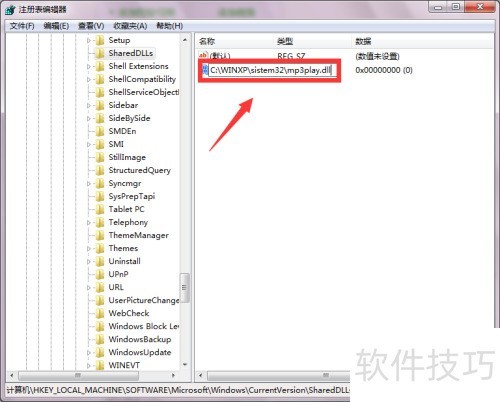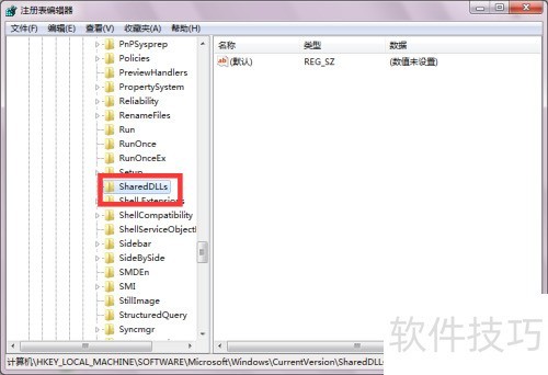 2、 在注册表编辑器中打开后,依次展开以下路径:HKEY_LOCAL_MACHINESOFTWAREMicrosoftWindowsCurrentVersionSharedDlls,进入该目录进行后续操作。请确保操作准确,避免误改其他项。