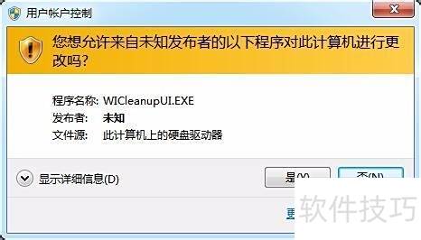 1、 从网络下载WICleanup后,双击运行WICleanupUI。在Windows 7系统中,通常会弹出用户账户控制提示窗口,只需点击是即可继续操作。