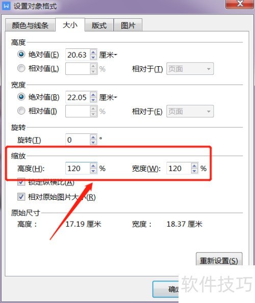将图片缩放比例设为120%,需在图片格式中选择缩小120%,具体操作步骤如下所示。