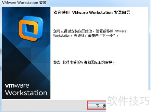 1、 双击已下载的VMware Workstation安装文件开始安装。