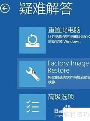 3、 请选择三个选项中位于中间的Factory Image Restore项,具体位置所示。