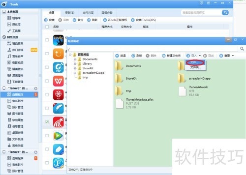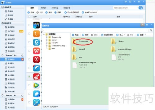5、 找到iPad中该程序对应的目录,点击进入其document文件夹。