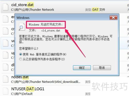 1、 若dat文件为配置类文件,通常体积较小,仅几KB至几百KB,双击打开时,系统常提示Windows无法打开此类文件,具体表现所示。