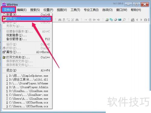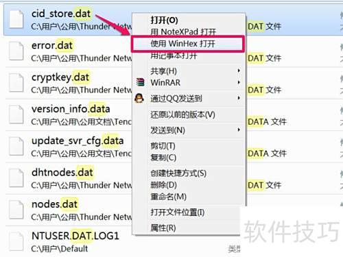 6、 若右键菜单缺少WinHex选项无法直接打开dat文件,可手动启动WinHex程序,通过其界面中文件菜单里的打开功能进行操作。