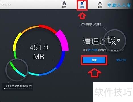 2、 菜单简单明了,点击工具栏清理选项即可。