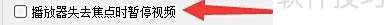 6、 勾选弹窗中的播放器失焦暂停视频选项。