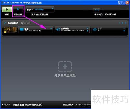 1、 启动Divx解码器,点击添加文件,将需要转换为Divx格式的视频文件导入即可。