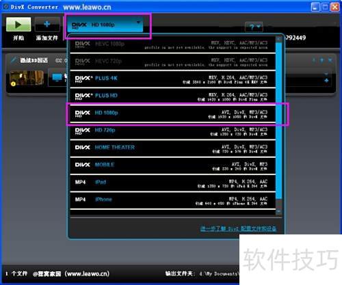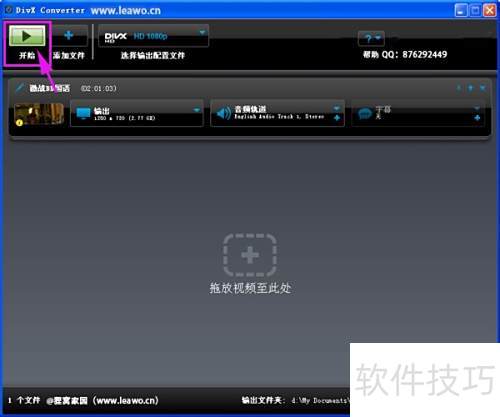 3、 参数设置完成后,需选定文件保存路径,接着点击左上角开始按钮,即可启动Divx格式转换,稍等片刻,转换即可顺利完成。