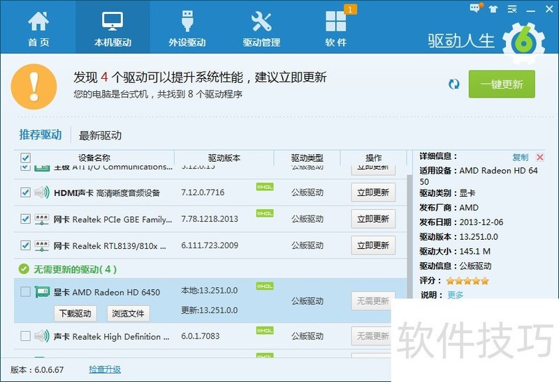 10、 除了基本的查看方法外,还可借助专业软件检测显卡驱动版本,推荐使用驱动人生6。该软件功能强大,能全面检测电脑硬件驱动信息,操作简便,便于用户及时掌握驱动状态,并支持一键升级,有效保障系统稳定与硬件性能发挥,是管理驱动的实用工具。