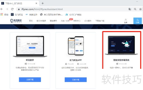 1、 首先在电脑上登录讯飞听见官网,下载并安装智能文稿字幕系统客户端。