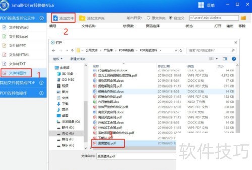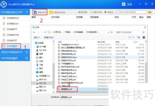 2、 点击按钮,选择需要转换的PDF文件。若需添加多个文件,可按住键,同时选中多个PDF文件进行批量导入。