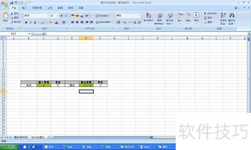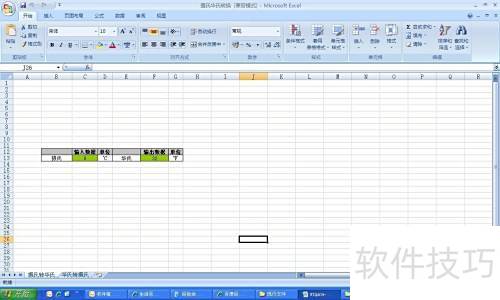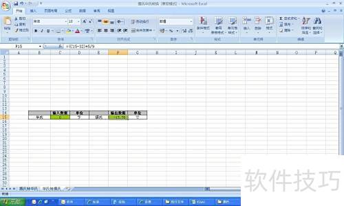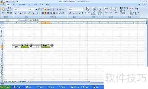 1、 创建表格,将工作表1重命名为摄氏换华氏,标注单位,数据区域用绿色填充。