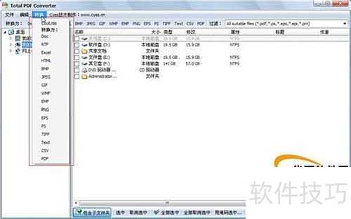 2、 第二步:点击软件界面菜单栏中的转换选项,可查看支持的文件转换格式。该软件能够将PDF文件转换为多种格式,如Doc、Excel、HTML、JPEG、GIF、Text等,功能丰富,满足不同需求,具体界面2所示。
