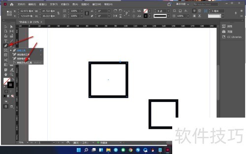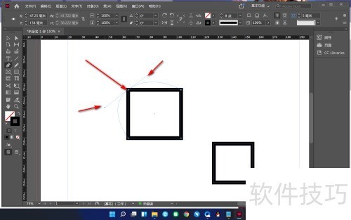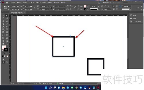 6、 在新建页面绘制矩形时,可见其由四个锚点构成。
