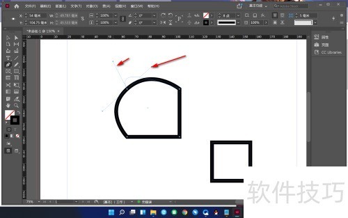 5、 使用锚点转换工具时,点击单侧手柄可独立调整对应锚点的弧度。