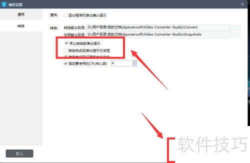 4、 取消勾选转换完成后弹出提示对话框,然后点击确定保存设置。