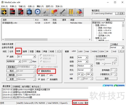 3、 在MediaCoder软件中,点击视频列表左下角的视频选项,勾选复制视频流;再点击音频选项,勾选复制音频流。视频将默认转换为MP4格式。