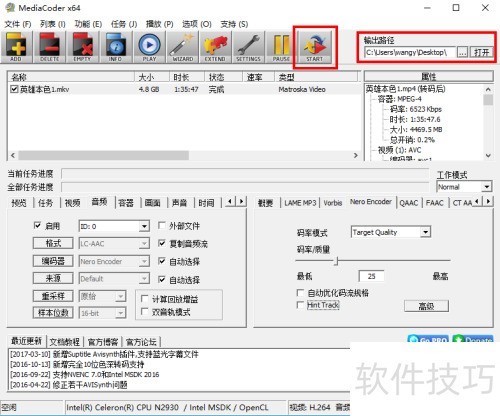 4、 在MediaCoder界面右上方设置视频保存路径,点击START即可开始转换格式。如需深入了解软件操作,可在线搜索相关使用教程获取详细指导。