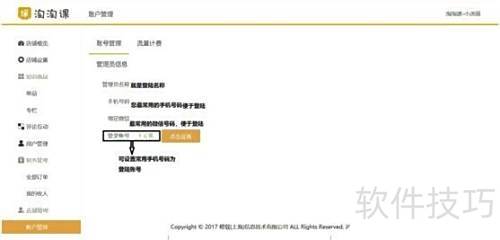 9、 登录淘淘课官网,进入账户管理,可设置管理员姓名、手机号,绑定微信号及登录账号。