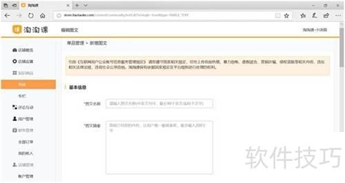 29、 创建专栏需填写名称与摘要,上传封面图片,并完善专栏详细信息。