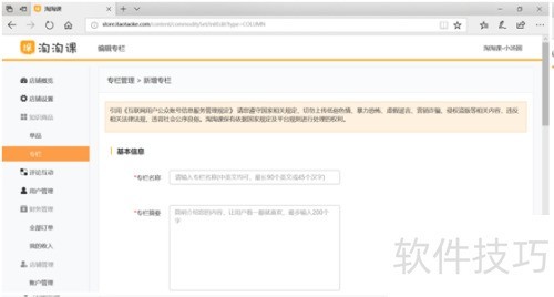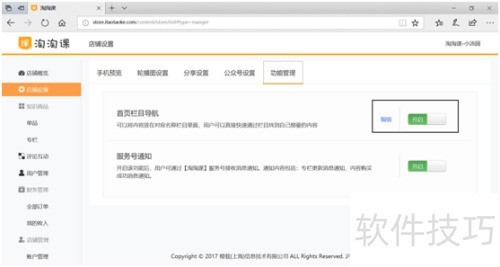 4、 完善店铺信息并进入首页,即可完成淘淘课店铺注册。