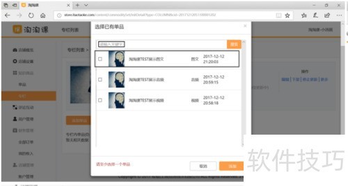 39、 选择已有单品课程后进入相应页面,可继续添加其他单品课程,操作流程相同。
